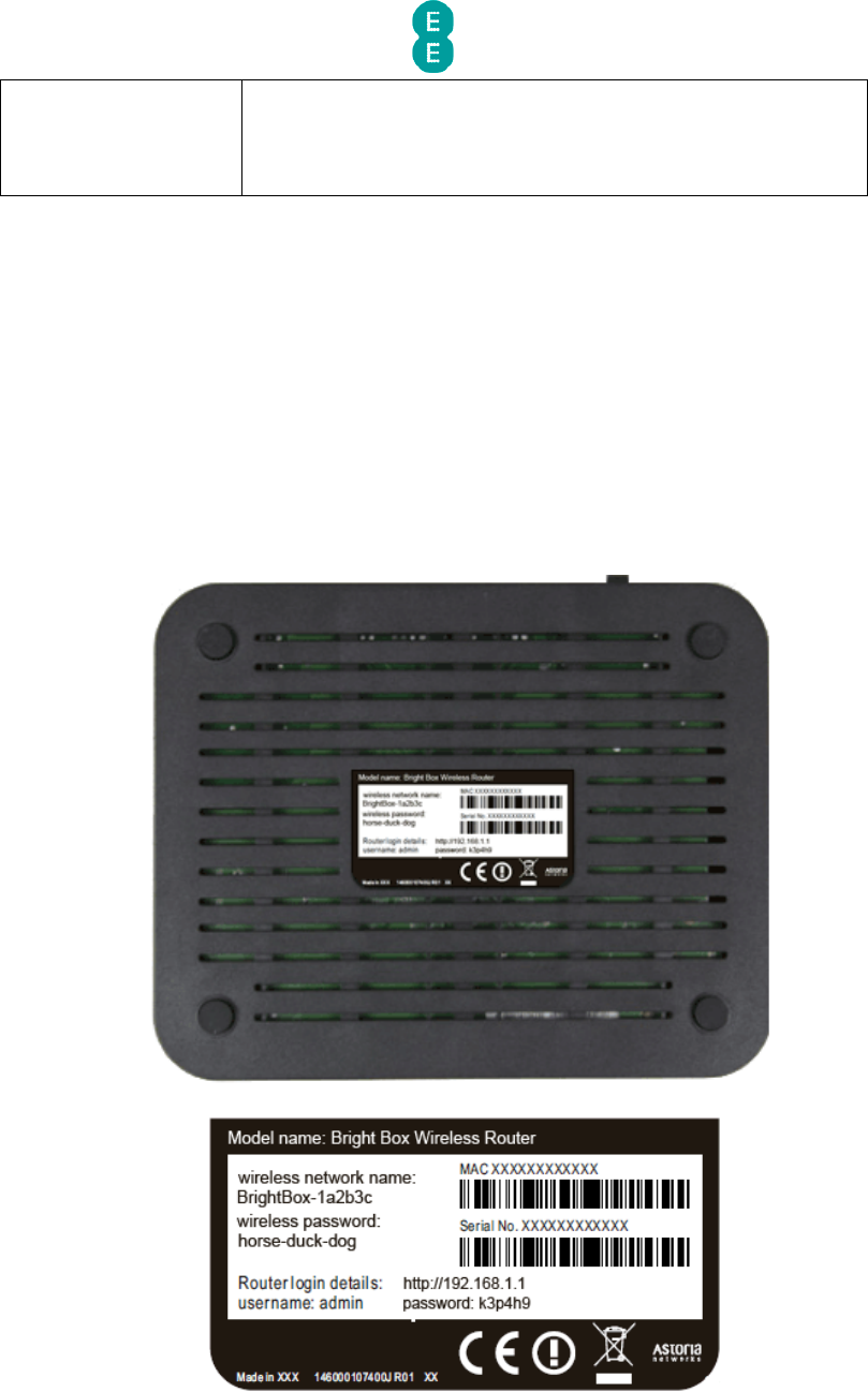 • Wireless network name (also known as SSID), e.g. BrightBox-1a2b3c